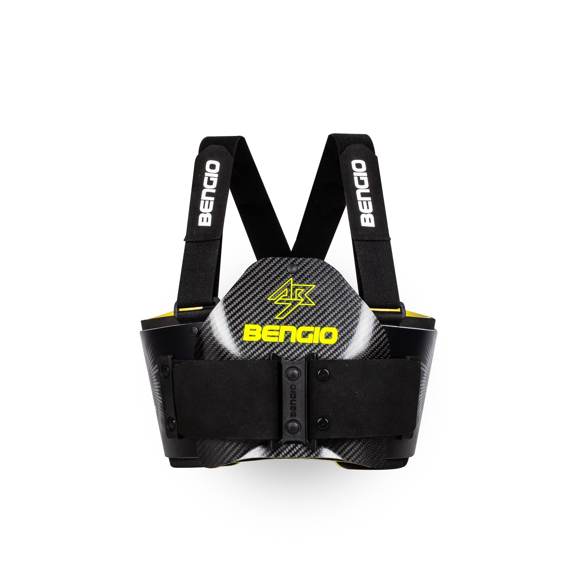 La Bengio AB7 representa la evolución tecnológica de la reconocida línea Bumper, adaptándose a los nuevos estándares del karting moderno. Es la primera costillera Bengio homologada bajo la normativa FIA 8870-2018, ofreciendo protección integral del torso con un nivel de seguridad superior al exigido por la FIA.